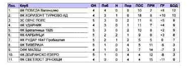 Се одиграа натпреварите од 5-тото коло во Трета Фудбалска Лига – исток. По нерешениот резултат на домашен терен во Турново а по победата на „Победа“ во пробиштип, екипата од Валандово е на првата позиција на табелата.