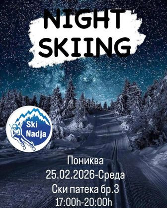 Во Среда (25.02.2026) во периодот од 17:00 до 20:00 часот на ски патека број 3 на Пониква ќе има ноќно скијање.